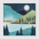 Ett vackert landskap med ett unikt struktur som visar ett landskap i sjö i bergstrakterna med ett stigning måne och himlar i nybörjare med blått, guld, grönt och turkos.