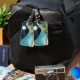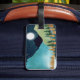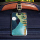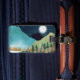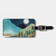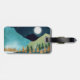 Ett vackert landskap med ett unikt struktur som visar ett landskap i sjö i bergstrakterna med ett stigning måne och himlar i nybörjare med blått, guld, grönt och turkos.
