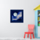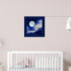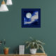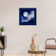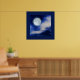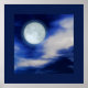Moonscape print - blandad mediegrafisk design, digitalt utökad fotografisk montage av måne, omgiven av ett glansigt gloria, mot ett djupt blått nattmoln himlar och moln med månljus
