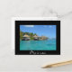 Vykort med lyxdryck som gör att smekmånadsbungalows i tak ligger i Morea, en ö nära Tahiti i Fransk Polynesien med svart gräns och texten: "Mo'orea".