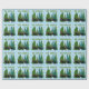 Silhuetterad bull och älg med rött och vitt tomtkött som rullar genom skogen. Sömlös upprepning av snöflingor i blues och teal skapar en vindrutespolare. Texten lyder: "Var glad". Melissa J Barrett konst