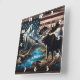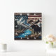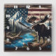 Moose by Sjö with Mountain and Flagga Background Fyrkantig Klocka