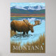 Mose Drinking i Sjö - Montana - Vintage resor Poster 2007. Den här bilden visar scener från Montana.