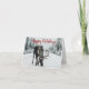 Ett helgdag-kort med en älg på vintern snö i vildmarken. En underbar Julhälsningar för vänner och familj. Fet röd festiv manus mot ett vackert foto.