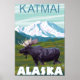 Moose Scene - Katmai, Alaska - Vintage resor Poster 2007. Den här bilden visar scener från Katmai, AK.