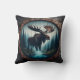 Moose som står av en ström i en skog kudde