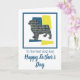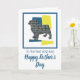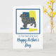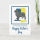 Mops hund silhuett i gul, blå och svart modern rutig mönster. ‘Till den bästa hundpappan’ och ‘Glad Fars dag’ på utsidan och älskvärd text på insidan kan ändras till vad du vill. Ett bra sätt att fira en djurägares Fars dag.