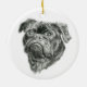 Denna prydnad har en profilritning av en mops. Gör en fin present till mopsälskare! Konstnärliga detaljer: 12x12 oljepastell på papper. Upphovsrätt: Dominic A. White. Alla rättigheter förbehållna.