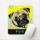 Hundmousepads med mopskonst på gul bakgrund med cirklar