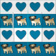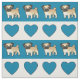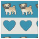 Mops och hjärtor - blått tyg
