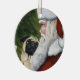 Denna prydnad presenterar en reproduktion av min original- oljemålning av en mops och en Santa.