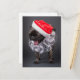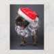 Mops som gäspande i en tomtehatt och skägg helg vykort