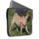 Mops som ha på sig den röda selet laptop fodral