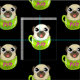 Detta tygtryck har lite en mops i en mugg. Tygtrycket är perfekt för någon mopsälskare. gör hänger lös, filtar och mer.