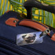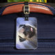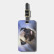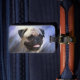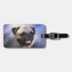 Lisma kulört mopshundansikte på en målningnågot liknandebakgrund av skuggar av märkre för blåtthund älskarebagage
