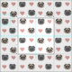 original- konstverk av Lydia Sanchez av en lismamops och svartmops vänder mot in - mellan hjärtor