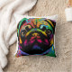Ett ljust och färgrikt popkonsttryck av en mopshund på en vitbakgrund.