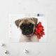 Mopsvalp inslagen i en julbåge julkort