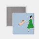 En liten flicka är bokstavligen luftburen bakom hennes mor när hon drar henne med handen i den roande designen på den här magneten. Kvinnan bär en blommigt av gräs grönt och har mörkens klåda. Barnet bär en rosa klänning med en gult fönsterruta mönster och rosa skor. Hennes långa, gyllene hår flyger i vinden. Uttrycket på hennes ansikte är ett uttryck för oro och förvåning. Från min ursprungliga digitalt skapat blandade medieflikt.