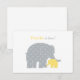Denna söta tack-kort för baby shower har en bedårande grå silhuett av en mor elefant med sin dyrbara gula baby elefant kalv och ett lekfullt "Tack en massa!" meddelande, mot en glad gul prickig bakgrund. Den ljusa gula och grå paletten gör ett perfekt könsneutralt val för att tacka baby shower gäster. Baksidan har utrymme för ett personligt tack meddelande, och all text är helt anpassningsbar.