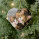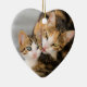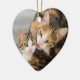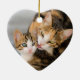 Katten i mor växer och slickar sin unge kattunge ömt, båda ansikte sida vid sida. Ömsesidig trimning visar det vänliga förhållandet mellan katter. Denna keramiska hjärt-julprydnad är en presentidé för kattälskare. Denna söta och vackra kattunge bild fotograferades av Katho Menden http://www.zazzle.com/kathom_photo