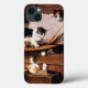 iphone case med oljemålning av Henriëtte Ronner-Knip om Bord (1883). En vit och brun mor-katt ser efter att kattungarna leker med färg och andra konstföremål på bord. Två kattunge gömmer i lådor. En perfekt gåva till kattälskare och romantik.