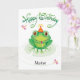 Få din amfibianska attityd att gå med den här grodan på en lilyplatta som stirrar på en bit av födelsedagskalas framför honom. Skicka det här till mor som kärlek grodor och önska dem roligt!