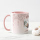 En elegant, gigantisk och glam mugg. Ro guld glitter dropp, färgdroppstift. En chic övertoningsbakgrund för rosa. Anpassa och lägg till ett eget foto av mor, familjen, barnen, husdjuren. Texten "Bästa Mamma någonsin" är skriven med ett modernt handskript i stil. Mörk ro guld färgad text. Perfekt som en gåva till en födelsedagspresent, Mors dag eller julklapp.