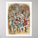 En charmerande vintage Mor Goose-illustration som dansade med Jultomten vid partyet vid jul skapat på 1890-talet.
