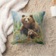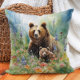 Mor Grizzly Bear Unge Flowers Paeing Kudde