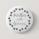 Rund knapp för Mor-of-the-Groom vid en bröllop-händelse som har en botanisk utformning av mörk grått ivy wandeans botaniska utformning med stiliserat skript i samma färg. Välj storlek knapp.