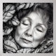 En AI-film har en digital svart och vit illustration som är en porträtt av en vacker, mycket detaljerad, sovande gammal kvinna omgiven av löv