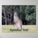 En perfekt fotosouvenir från Australien, den här bilden visar ett mor eller Morsa, en känguru som står upprätt med baby Joey som sticker ut huvudet från sin påse när de står och betar sig i gräset framför träd i bakgrunden. Lägg till namn, semesterdatum eller meddelande som tillval för att skapa ett eget unikt Aussie souvenir-fotografi. En annan originalutformning av exklusiven av Sonja Quidama Image Code: kangaroo
