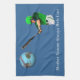 En kvinnlig batter, som representerar Mor Nature, träffar en basebollliknande glob på jorden. Text som läser "Mor Natature Always Fladdermöss Last" visas också. Förändringar i miljön kan få oväntade och oönskade konsekvenser. Välj en egen bakgrund färg.