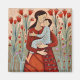 Denna illustration av ett mor och ett barn i ett fält med höga röda blommor firar glädjen hos moderskap och kärlek.