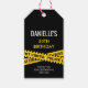 Mordgåta party eller polis party gunstigt taggar med modern design av polis tejp med gula varningsränder.