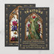 Tarotkort inspirerade "FÖRRÄDare" Mordmysterium-festinvitationer. Visar en man och kvinna i kappor med vapen i en kyrkliknande fönsterbåge med svart bakgrund och falska glasfärger. Oäkta förgyllda detaljer. Perfekt för Halloween, en natt under stjärnorna, kosmiskt, stjärntecken, gotiskt eller mystiskt magiskt mordmysterium på kvällen. All text kan ändras. Oäkta förgyllning. För att göra fler ändringar gå till Anpassa denna mall. Längst ner ser du “Vill du anpassa denna design ännu mer? Klicka på REDIGERA med hjälp av designverktyget. Därifrån kan du ändra några av teckensnitten och vissa färger, flytta runt eller ta bort det du behöver.