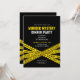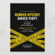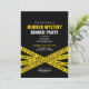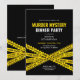 Mordmysterie födelsedagsinbjudan med modern design med polisband. Vit och gul design.