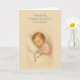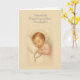 Firar att en dyrbar barndotter har anlänt med denna ömtåliga katolska design med en sovande flicka som håller en rosary. Perfekt för nya mor- och farföräldrar eller baptismala grattisar, detta kort gläder sig åt Guds gåva av livet och kärlek. Inuti text finns en skript-vers och en hjärtlig katolsk välsignelse.