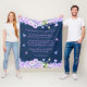 Filt för cute-blommigtens dotterdotter med skripttext för elegant som kan redigeras och personlig med ditt eget namn. Den har blommor i lila, violett och rosa, fjärilar, och ett hjärtligt och meningsfullt citat från en mormor som lyder "Till min vackra barndotter, oavsett hur nära eller långt ifrån varandra du än befinner dig i mitt hjärta. Jag är välsignad att vara din mormor och jag kommer alltid att vara här för att vägleda dig och vägleda dig när du behöver mig. Lägg dig i filten när du behöver en kram."