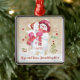 Ett ynkligt litet barn i snö som bär på hennes snö-marionett är den söta illustrationen på denna vackra julprydnad för mordotter. Den lilla snö-flickan bär rosa handskar, hatt och scarf. Den lilla snö-valpen i en röd tomtehatt verkar slicka hennes ansikte. En liten grönt Julgran ligger i bakgrunden och omges av fallande snö och röda stjärnor. Du kan anpassa texten med barnets namn och ändra hälsning till ditt eget personliga meddelande.