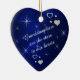Det här är en underbar julprydnad för en morförälder till ge till en barndotter. Den har silver snöflake, hjärta och stjärna bilder mot en djup blå övertoningsbakgrund. I mitten finns din anpassade text i vitt. För närvarande står det i texten: "Mordöttrar är stjärnorna i våra hjärtan". Texten är helt och hållet anpassade, så du kan få det att säga spelar ingen roll att du vill. Baksidan av prydnadsföremålet har samma bild som hennes namn. Det här är en speciell keepy-gåva till jul, hennes födelsedag eller studenten som din dotterdotter kommer att uppskatta för evigt.