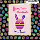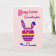 En söt Påskhare i form av ett Påskägg, dekorerad med fläckar, rand och zigzags i rosa, blått och gult. Budskapet inuti kan anpassas, eller så kan du använda förslaget "En glad påsk bunny är här för att önska en speciell barndotter ett mycket Glad påsk!"
