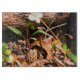 Den här skärskivan har ett foto av en vår-morel och en vit vår-blomma.