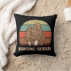 Denna kudde är reversibel. På ena sidan står "Jaktsäsong" med en bild av myrsvampar och på andra sidan står "Jag kommer att hitta dig" med en bild av myrsvampar.
