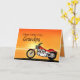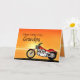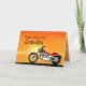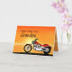 En motorbike som är liknande till ett Harley anseende vid havet med en härlig orange solnedgång. Ett underbart kort för vem som helst som gillar att cykla och motorcyklar. Se helheten spänna av kort för åldrar och förhållanden i mitt lager. Allt konstverk tar copyrightt på Norma Cornes