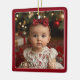Morfars och mormors första jul - nyfödd barnbarn röd keramikprydnad: Fira en högtidlig milstolpe med denna vackra prydnad, som är utformad för att markera det första julen för ditt lilla barn för de stolta mor- och farföräldrarna i ditt liv. Framsidan visar en förtjusande bild av ditt barn i en ram med en livfull röd bakgrund och en klassisk vit kant. Med denna dyrbara stund följer den hjärtliga texten "Vår första jul som mor- och farföräldrar", vilket gör den till en sann skatt som kommer att vara kvar i många år framöver.