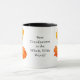 En vit ringsignal mugg med en svart fälg och handtag, dekorerad med Island i orange Poppies från en vattenfärgsmålning av Judy Adamson. Texten i svart är "Bästa morföräldrar i hela världen, i hela världen"!
