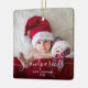 Hjälp dem att fira sitt första barnbarn med denna vackra moderna keepsaksdekoration. Den svarta texten lyder "Vår första jul som mor- och farföräldrar", med "mor- och farföräldrar" i ord i handskript för elegant med blommor före och efter. Ersätt enkelt exempelbilden med ditt favoritfoto från nyfödd bebis och lägg till namn och året. Ett vitt övertoningsfilter hjälper till att göra så att texten visas.