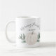 Cute Morgon Pumpkin hösten mugg med namn, har modern manustypografi och en chic pastellfärgspumkin med höst löv på vit bakgrund.
